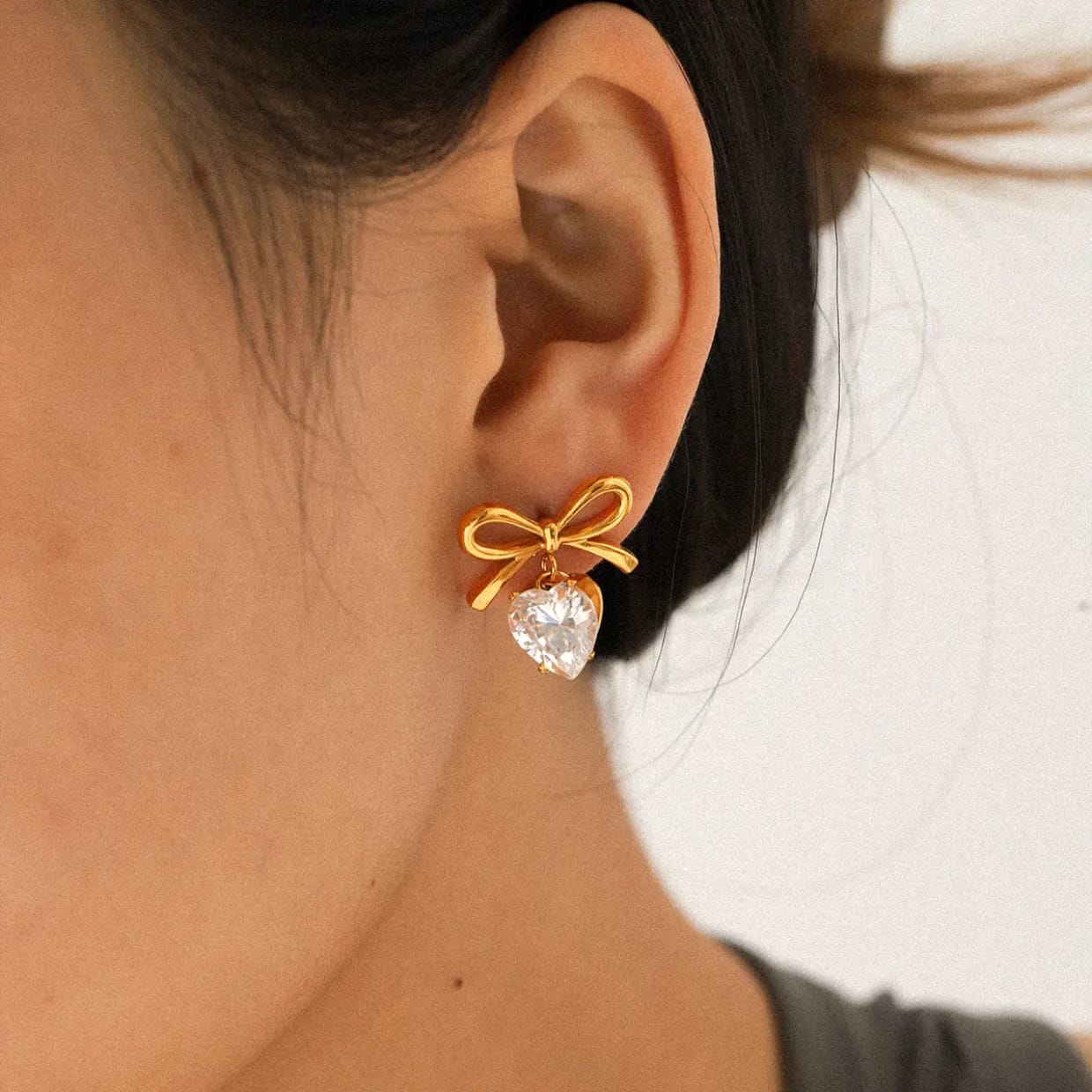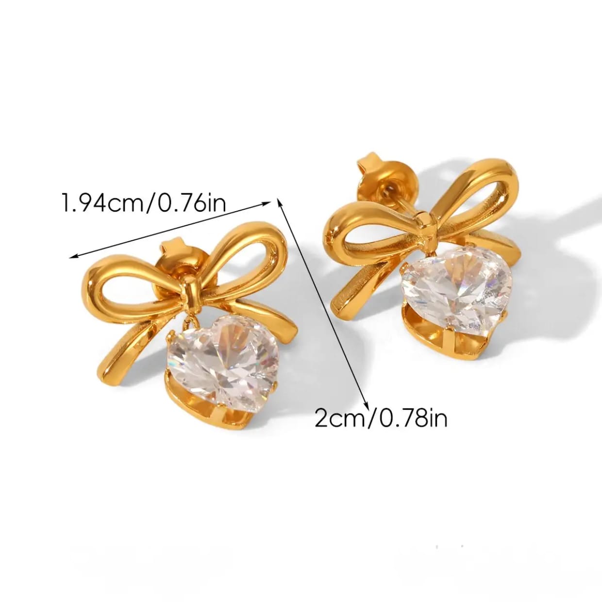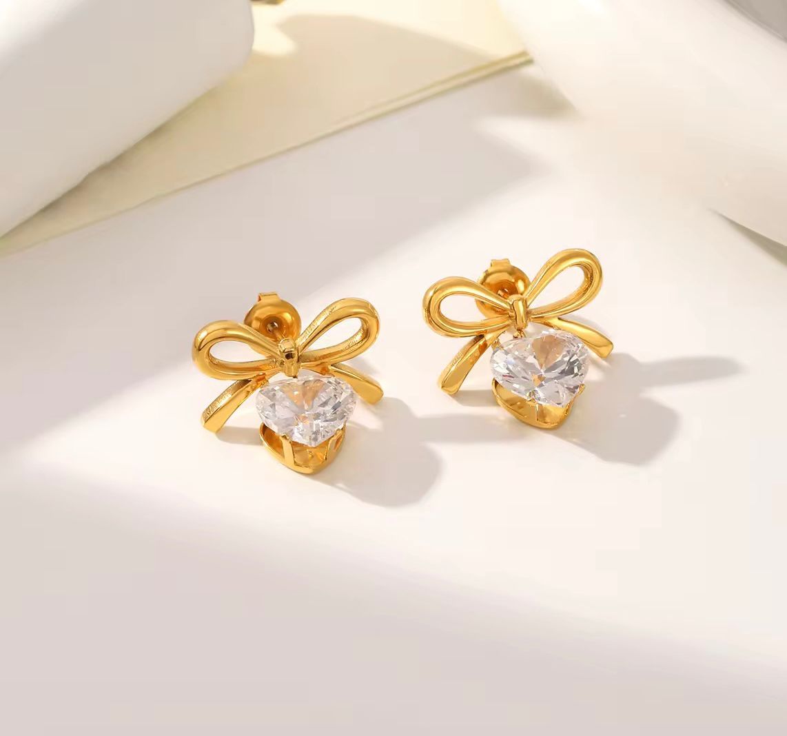 Crystal Bow Heart Solitaire Huggies